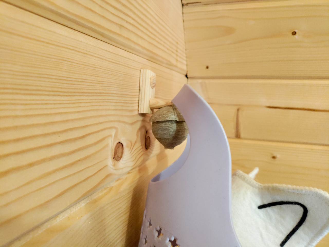 объект помещение интерьер стена деревянная стена древесина вагонка текстура крючок крепление баня сауна осиное гнездо гнездо ос бумажное гнездо осы насекомые вредители опасность безопасность дезинсекция борьба с насекомыми дача загородный дом деревянный дом крупный план макросъёмка природный материал гнездо на стене профилактика санитария бытовые условияПохожие фотографии