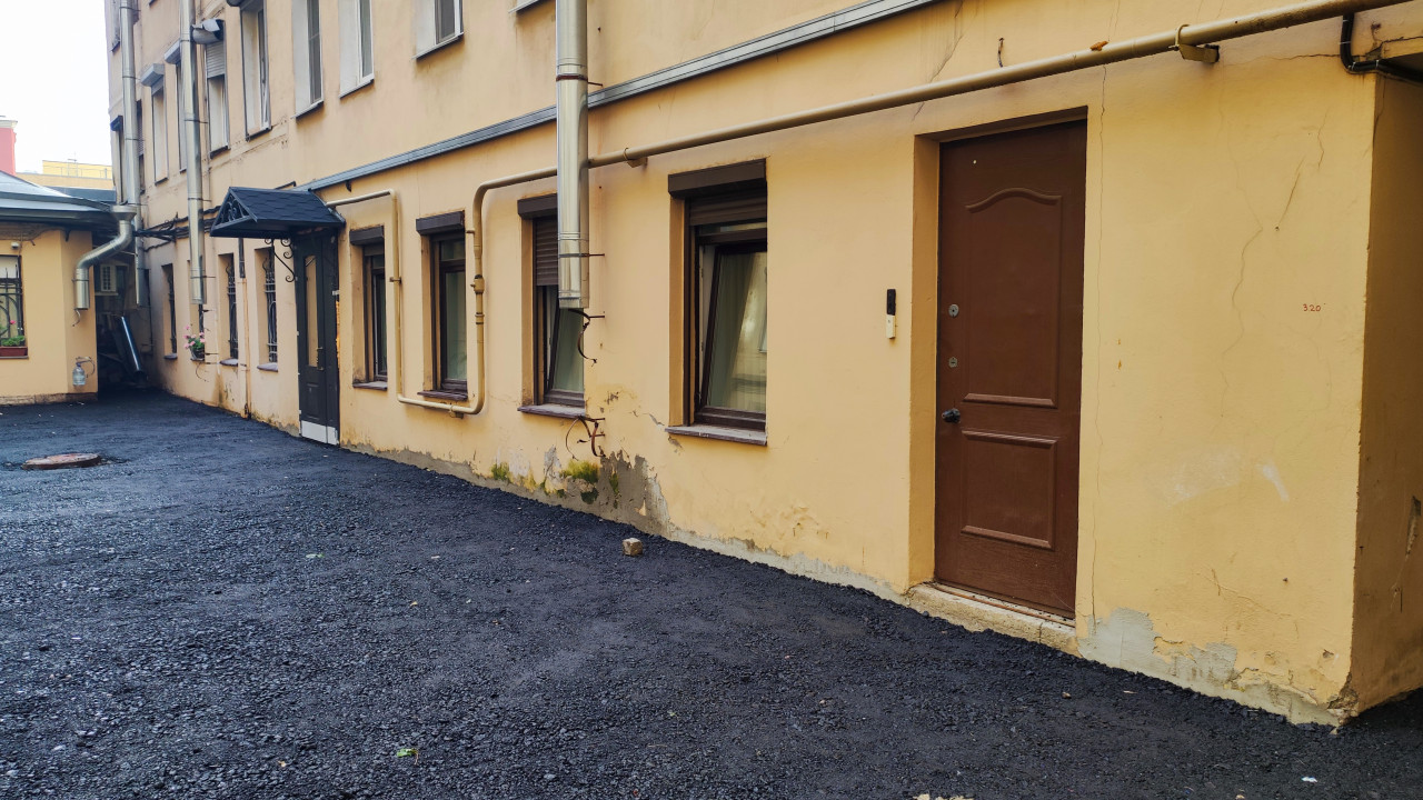 городская среда двор дворовая территория жилой дом фасад здания вход дверь окна штукатурка асфальт благоустройство ремонт жкхПохожие фотографии