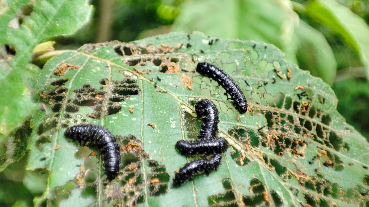 природа насекомые личинка гусеница лист листья зелёный лист повреждение листьев скелетирование листа следы питания отверстия на листе прожилки текстура биология энтомологияПохожие фотографии