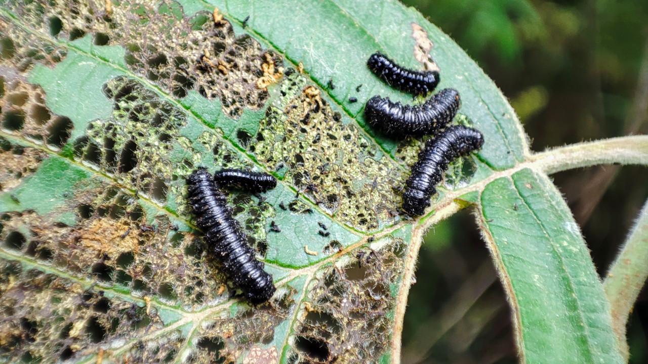 природа насекомые личинка гусеница лист листья зелёный лист повреждение листьев скелетирование листа следы питания отверстия на листе прожилки текстура биология энтомологияПохожие фотографии