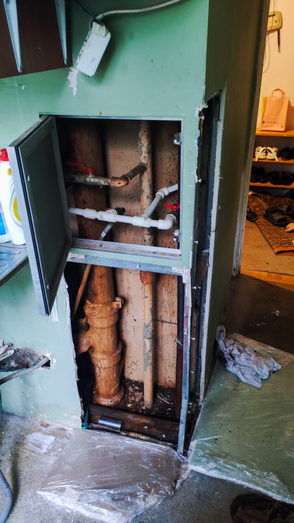 инженерные коммуникации инженерные системы сантехника трубы стояк трубопровод запорная арматура ревизионный люк техническая ниша доступ к коммуникациямПохожие фотографии