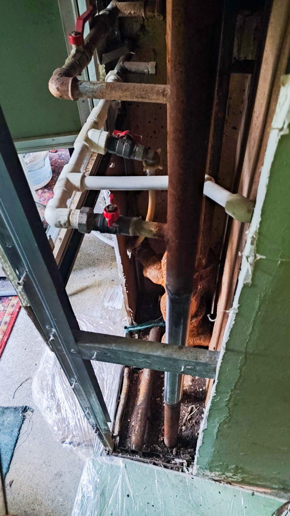 Подъезд в многоквартирном доме с чугунными канализационными трубами