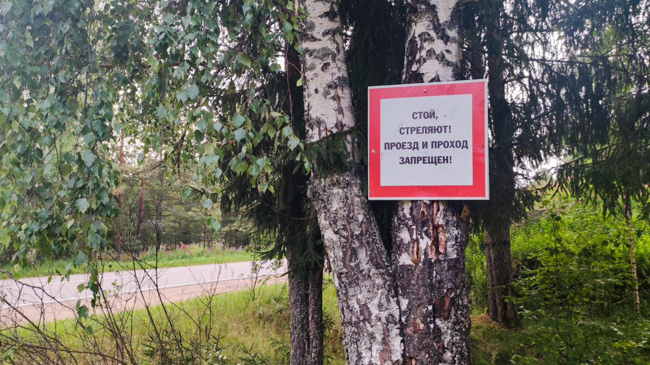 Знак о видеонаблюдении и запрете выброса мусора в зимнем лесу