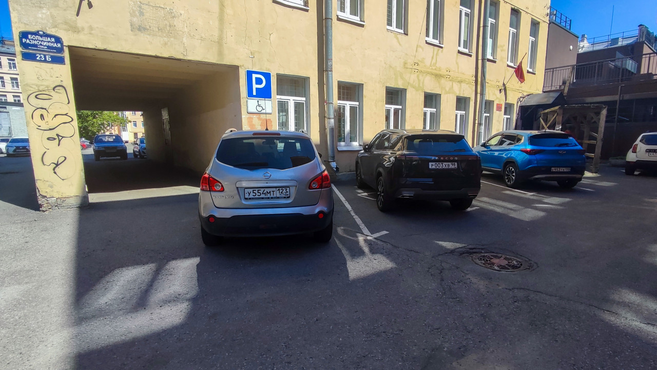 Табличка «Территория двора… Корпусная 28Г» на стене у въезда в жилой двор с парковкой и детской площадкой