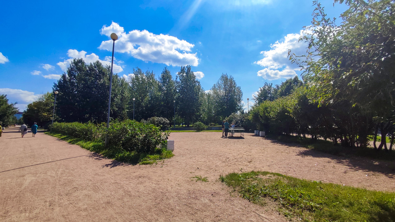Современные зоны отдыха в парке «Остров фортов» в Кронштадте с удобными шезлонгами и зелёным ландшафтом