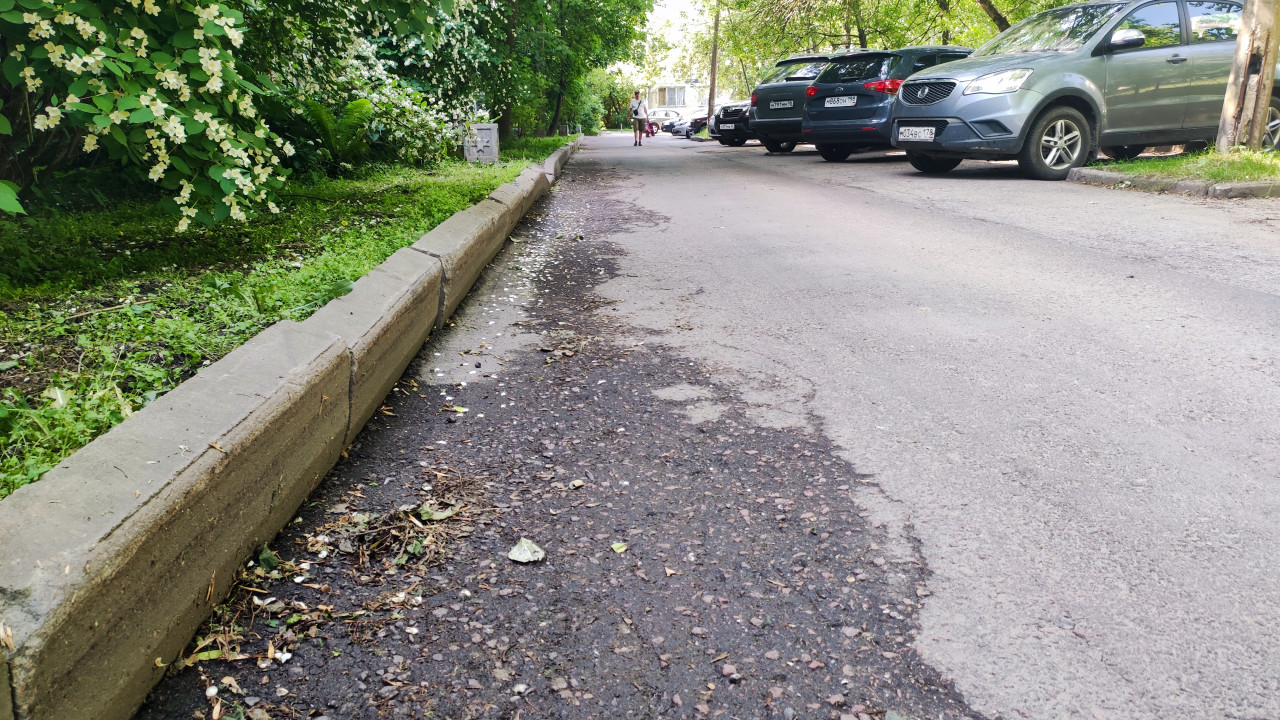 Улица у жилого дома с парковкой автомобилей