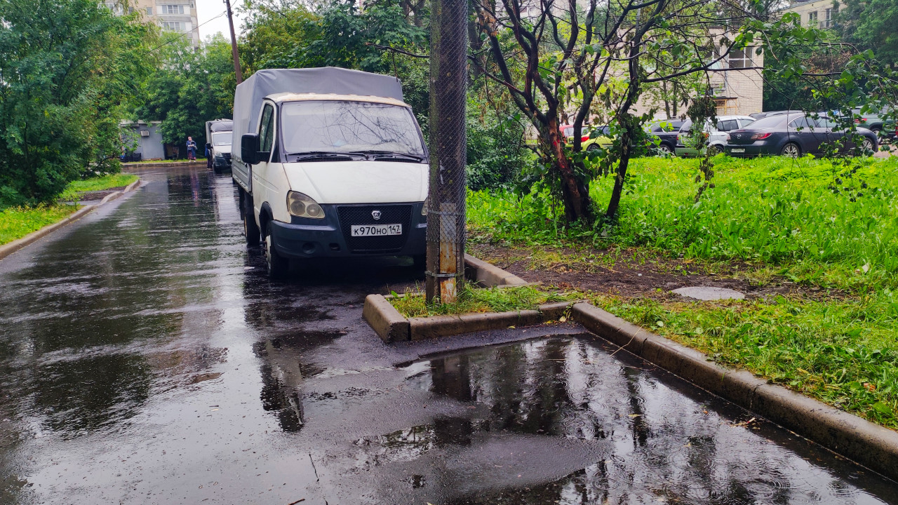 Панельный дом с дорогой и зелёной зоной в жилом районе