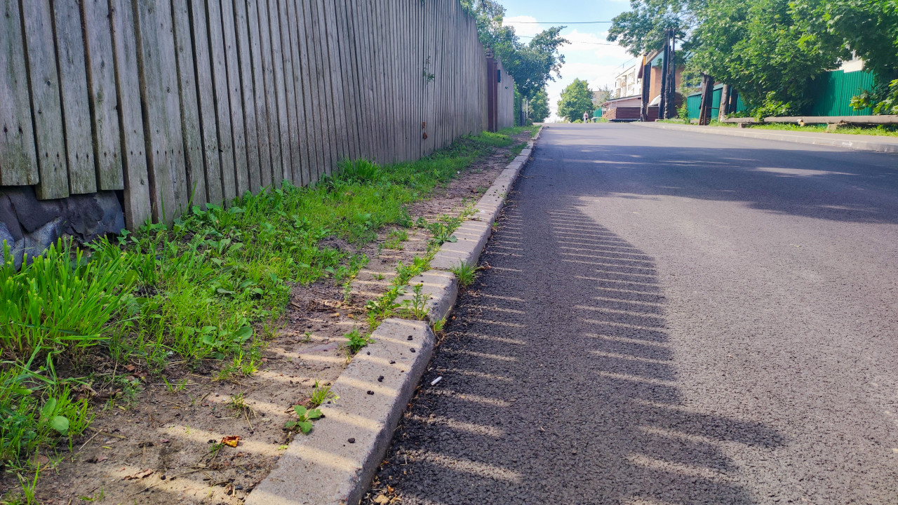 Улица с жилыми домами и асфальтированной дорогой в ясный день
