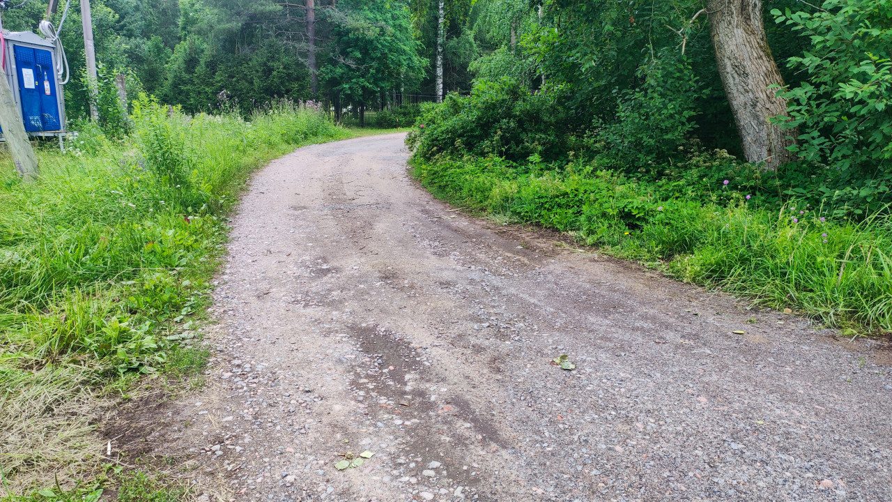 Грунтовая дорога с припаркованным автомобилем в деревне