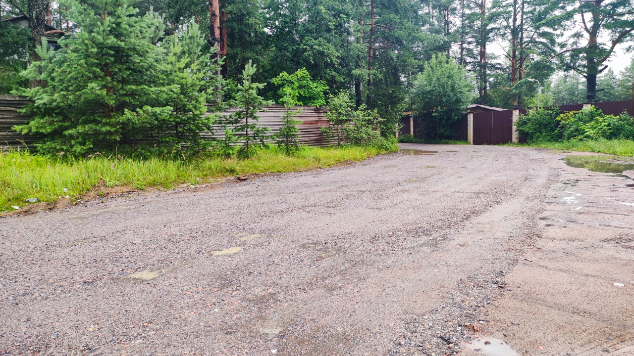 Улица с грунтовой дорогой и припаркованным автомобилем