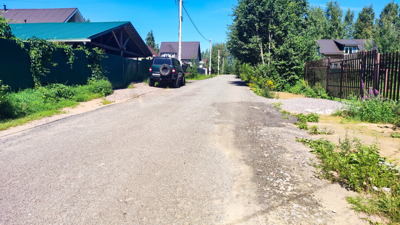 Проселочная дорога с лужами у частных домов