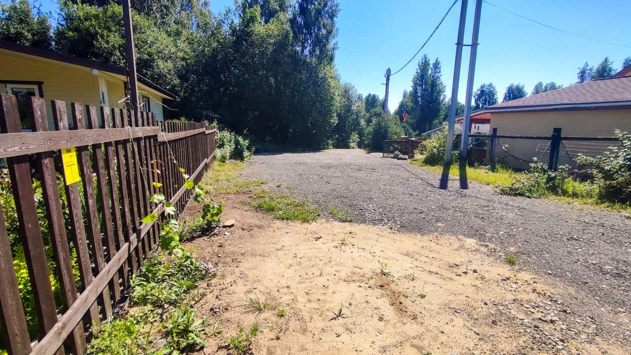 Грунтовая дорога с зелёными насаждениями и электрическими опорами