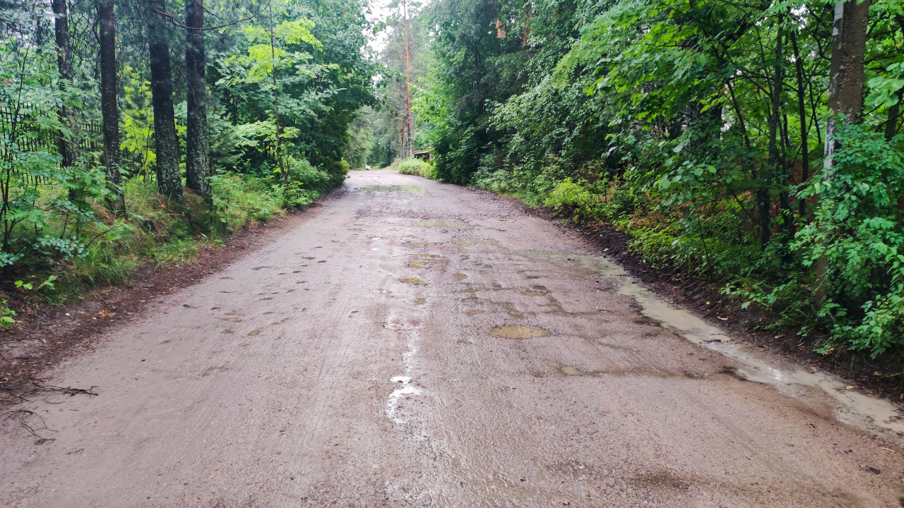Вид на песчаные выемки и пруды у леса под облачным небом, панорама