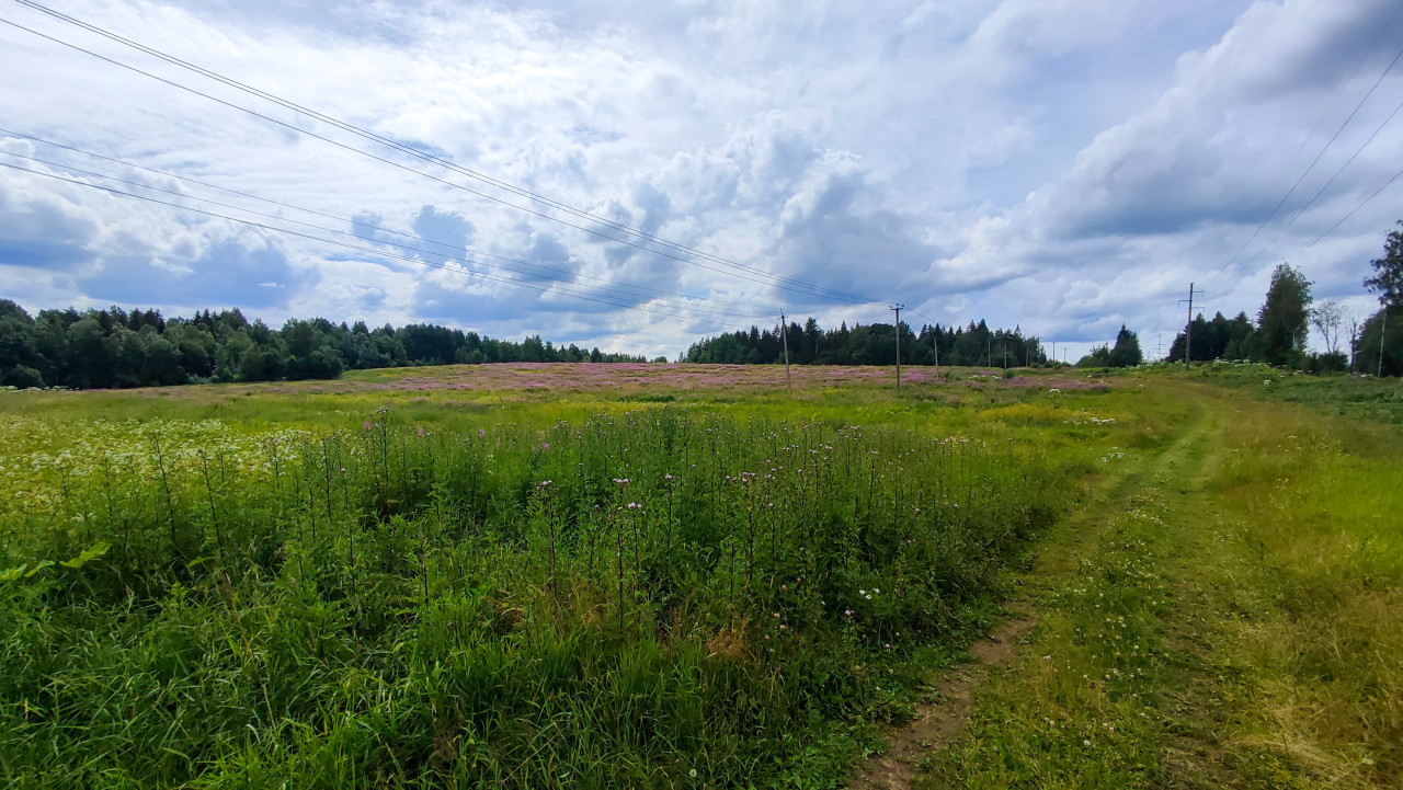 Поле борщевика под зимним небом