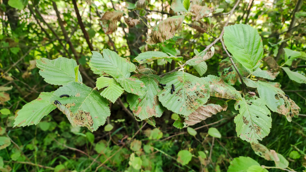 природа растения листва листья кустарник ветка зеленый лист повреждение листьев отверстия на листьях объеденные листья вредители растений гусеница гусеницы насекомые личинки фитофаги поражение растений болезнь растений защита растений садоводство лесные растения экология биология энтомология питание насекомых природная среда крупный план макроПохожие фотографии