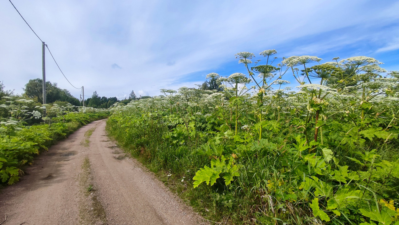 природа лето сельская местность дорога обочина зелёная растительность растения заросли борщевик борщевик сосновского инвазивное растение карантинное растение опасное растение белые цветы экологияПохожие фотографии