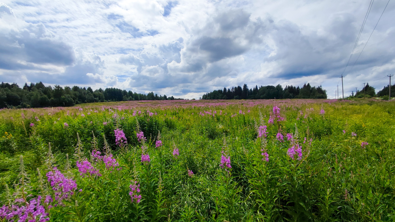 Сухие стебли борщевика на фоне пасмурного неба