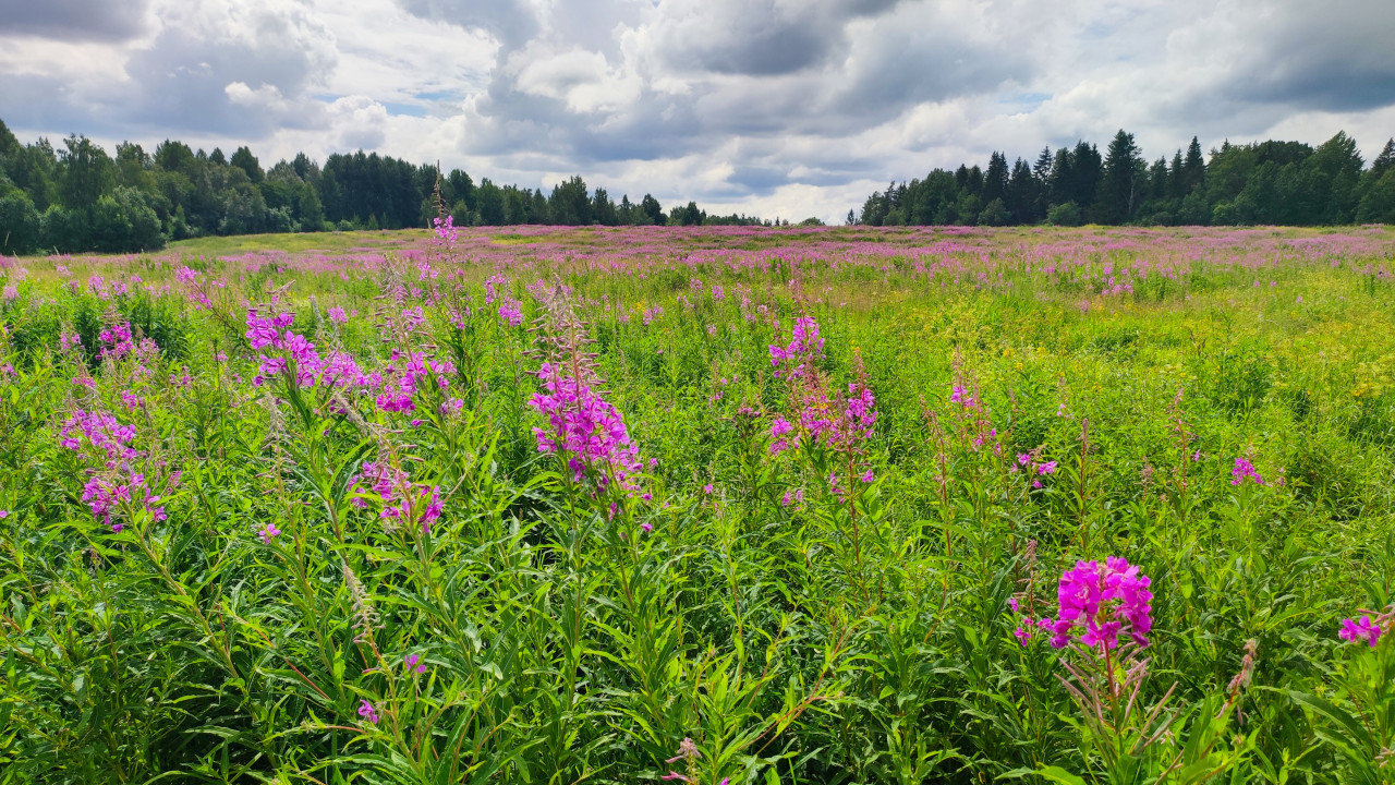 Грунтовая лесная дорога среди сосен, елей и берёз