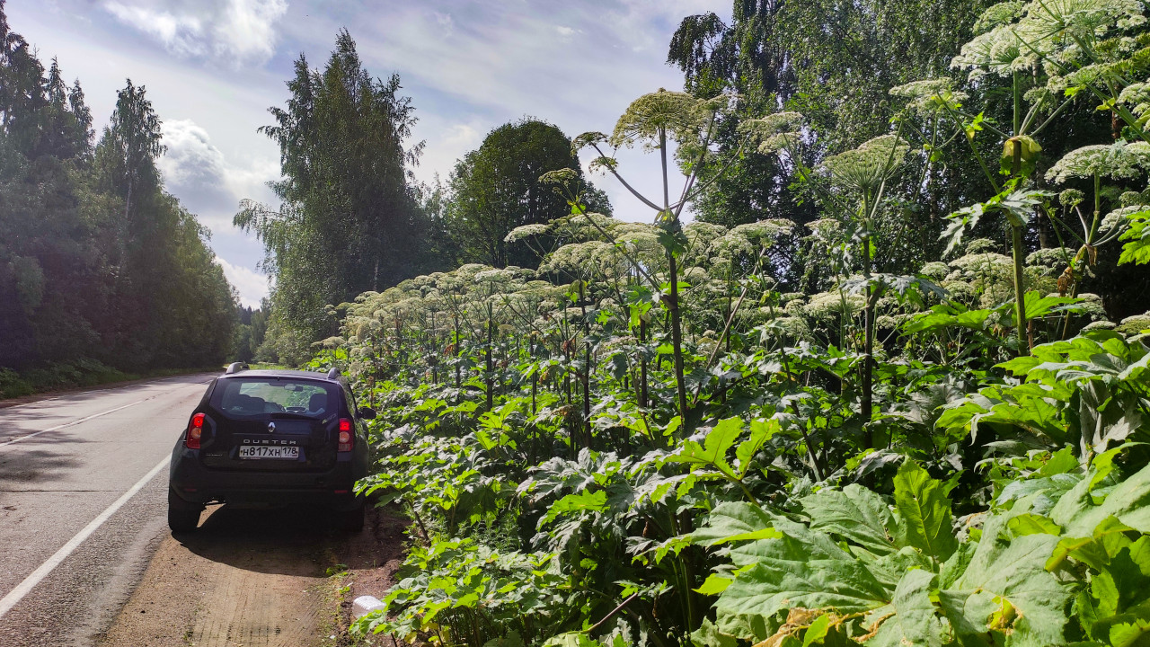 природа лето сельская местность дорога обочина зелёная растительность растения заросли борщевик борщевик сосновского инвазивное растение карантинное растение опасное растение белые цветы экологияПохожие фотографии