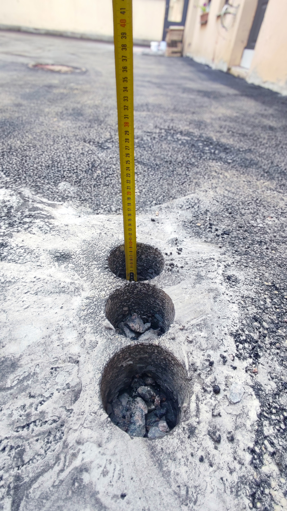 ремонт дорог дорожные работы асфальт асфальтобетон керн отбор проб бурение отверстие в асфальте измерение мокрый асфальтПохожие фотографии