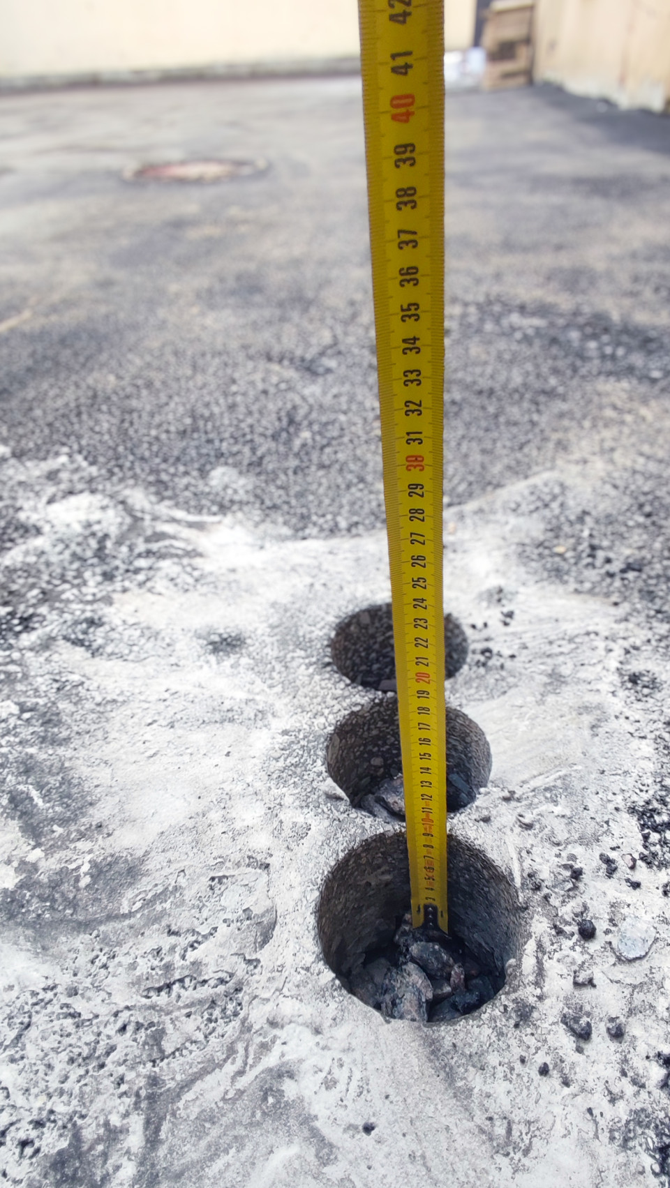 ремонт дорог дорожные работы асфальт асфальтобетон керн отбор проб бурение отверстие в асфальте измерение мокрый асфальтПохожие фотографии