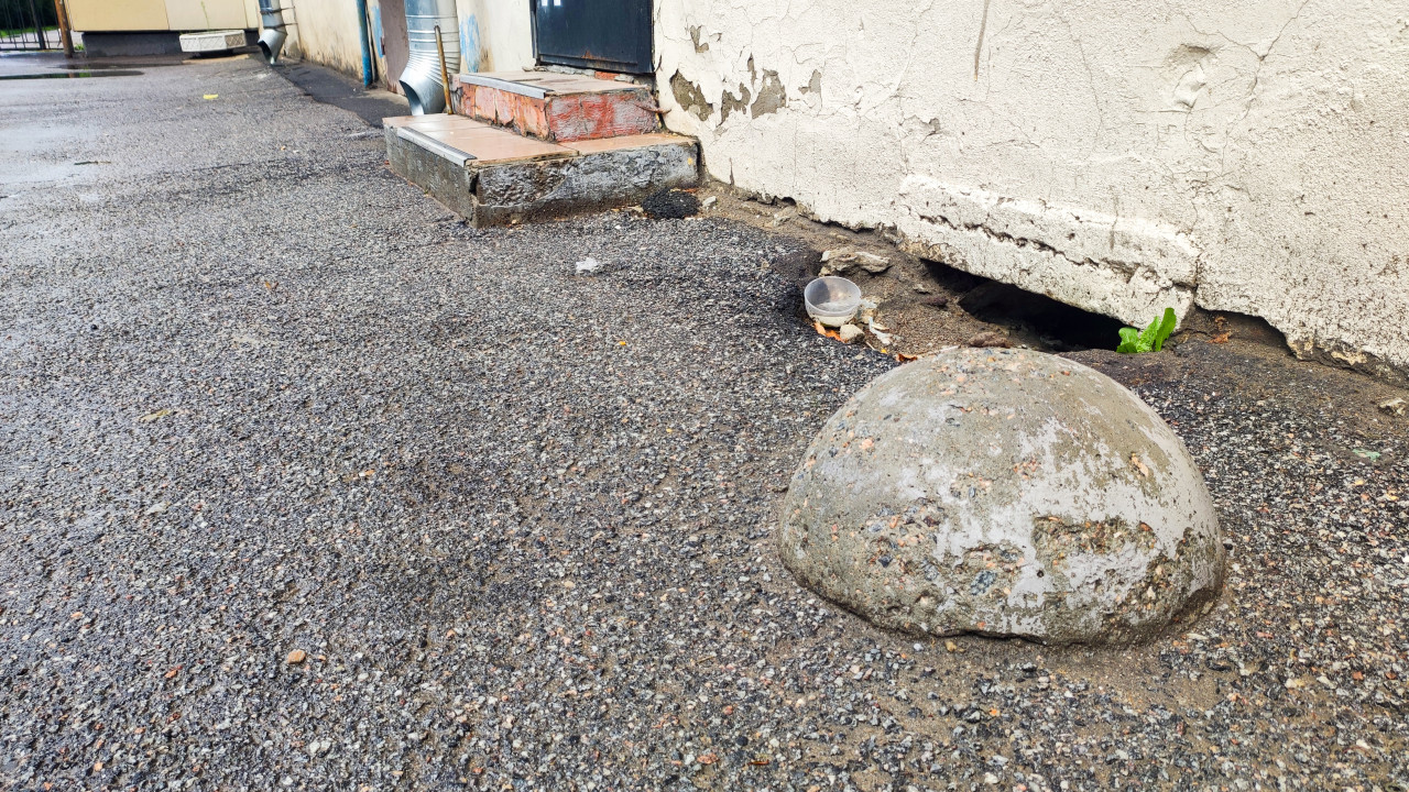 дефекты разрушение Санкт Петербург город двор ограничитель парковки бетонная полусфера антипарковочный элемент входная группа ступени крыльцо плитка мокрый асфальт после дождя фасад цоколь разрушение штукатурки трещины отверстие у стены росток сорняк пластиковая емкость мусор водосточная труба благоустройство содержание территории коммунальные службы урбанистика уличные детали ремонтПохожие фотографии