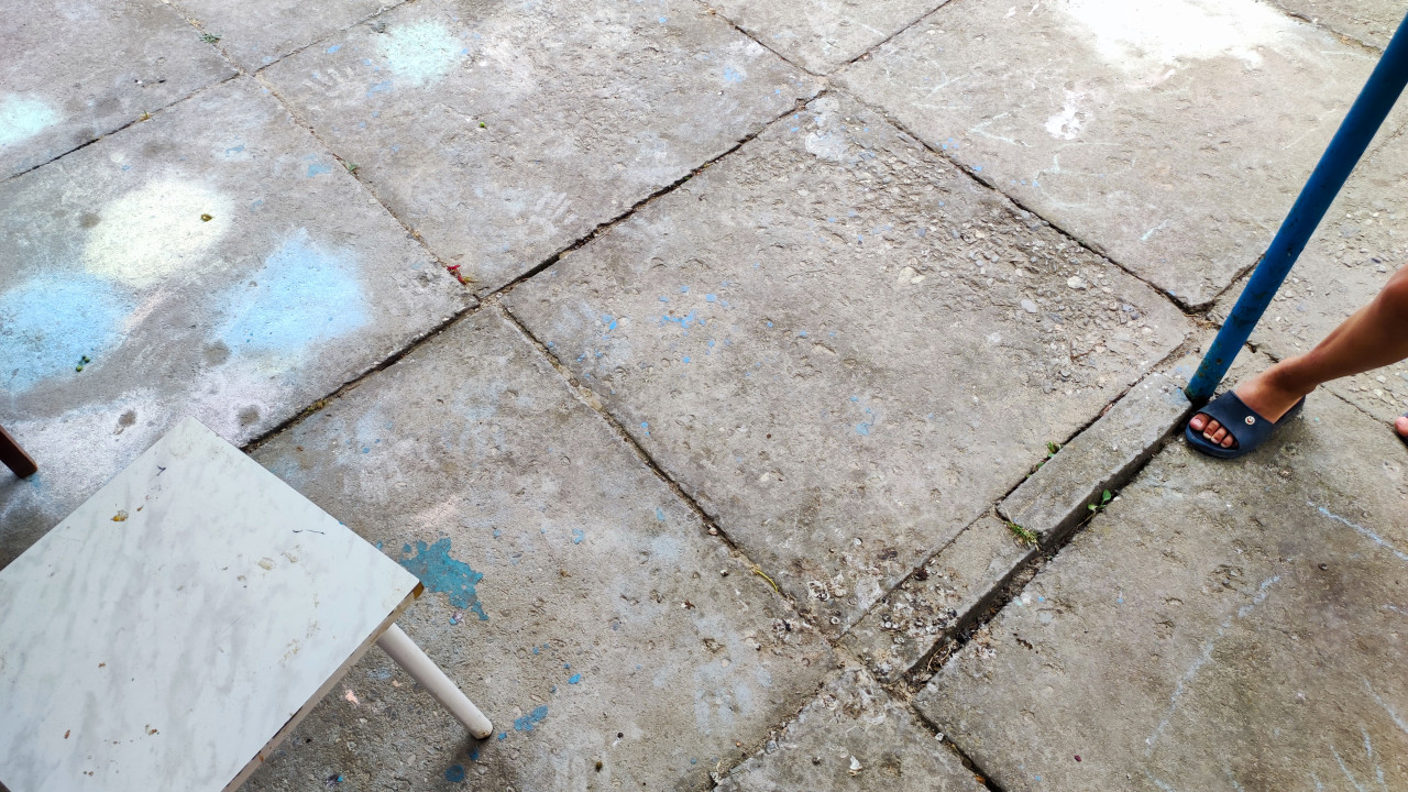 Проложенная проводка в полу у старого дверного проёма в помещении ремонта