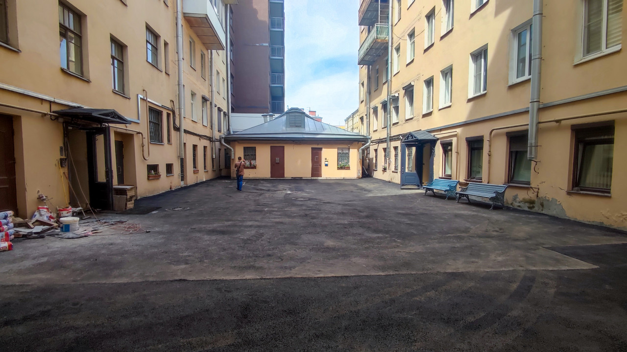 Асфальтовая заплата на пересечении дорожек рядом с крышкой люка