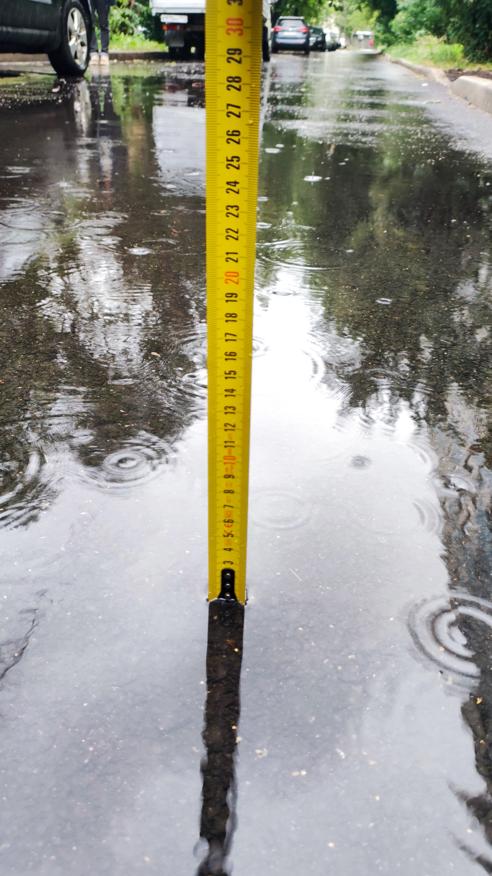 Измерение расстояния от бордюра до бордюра на улице