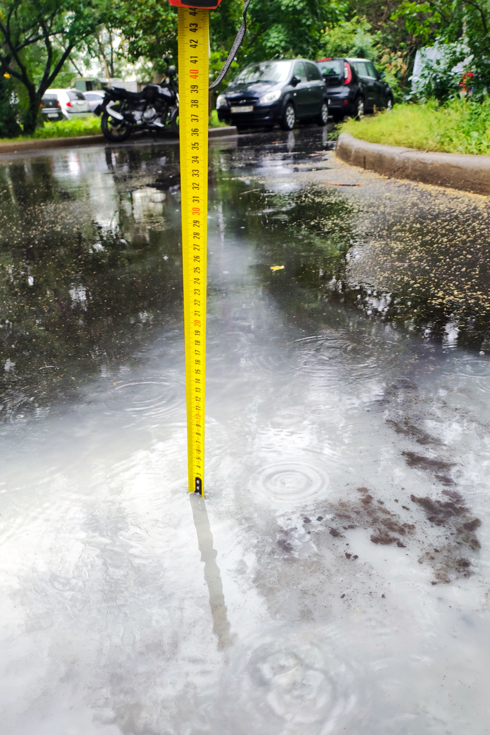 Измерение высоты от слоя щебня до края дорожного покрытия