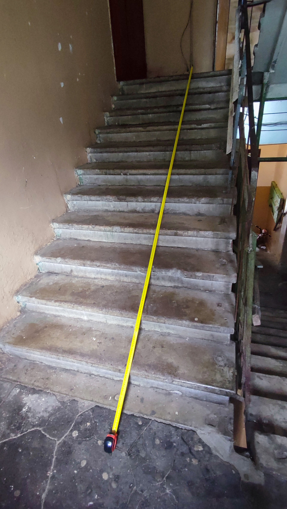 Измерение перепада высоты между ступенями на крыльце здания