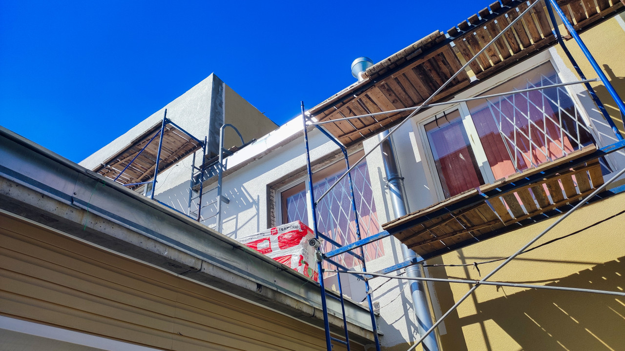 Ремонт фасада здания с частично обнажённой кирпичной кладкой