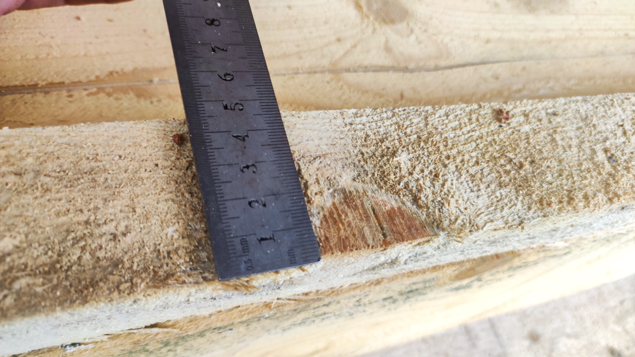 Измерение ширины проема в деревянном доме с помощью рулетки
