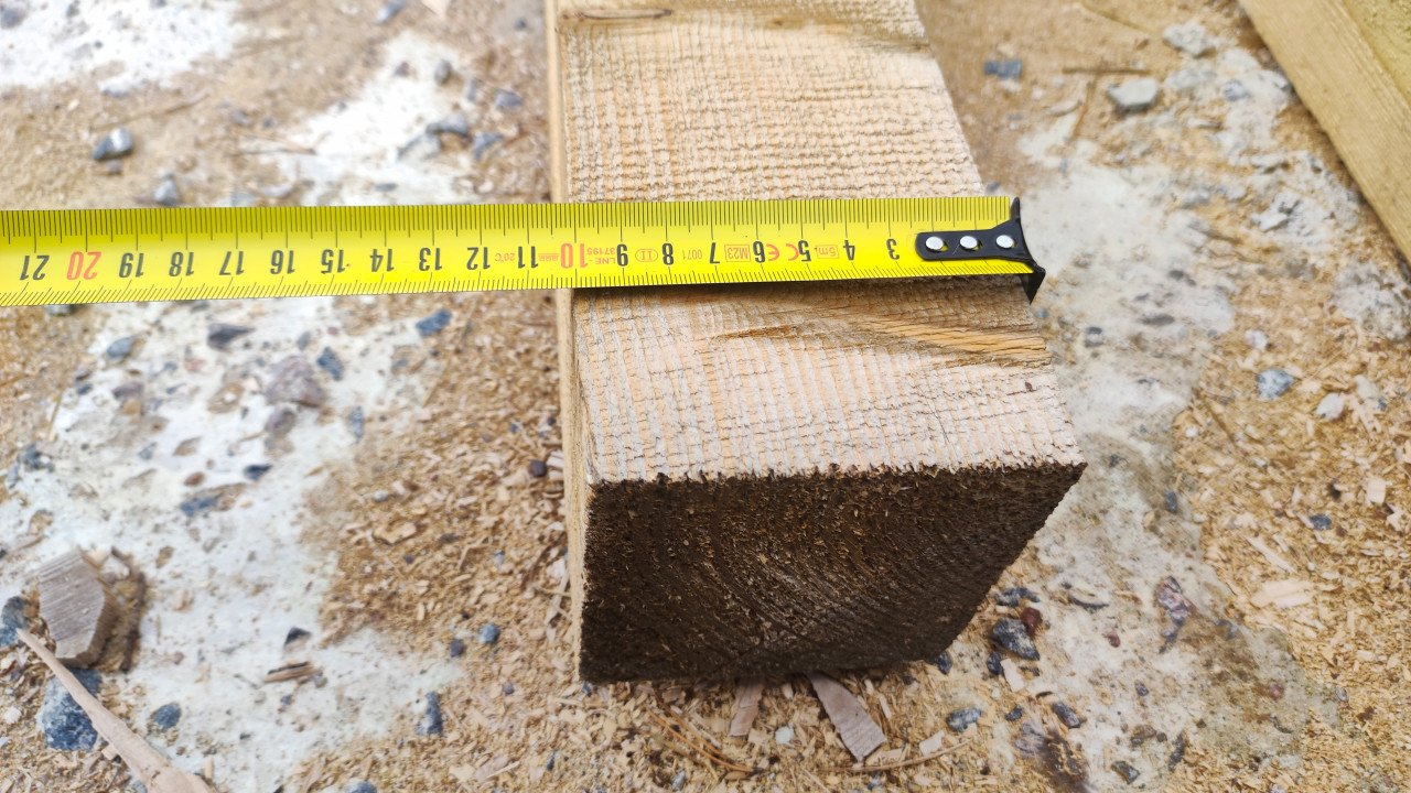 Измерение ширины досок настила на мосту в парке