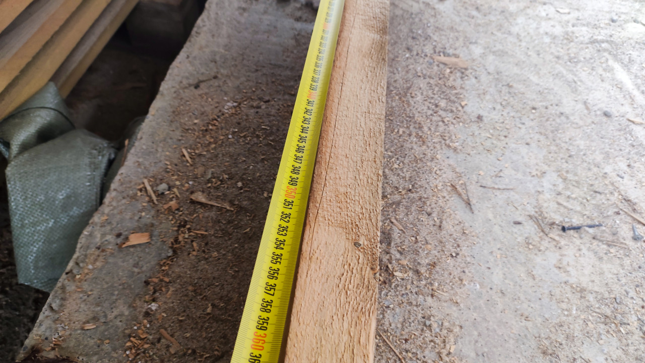 Измерение толщины деревянной балки в стропильной системе
