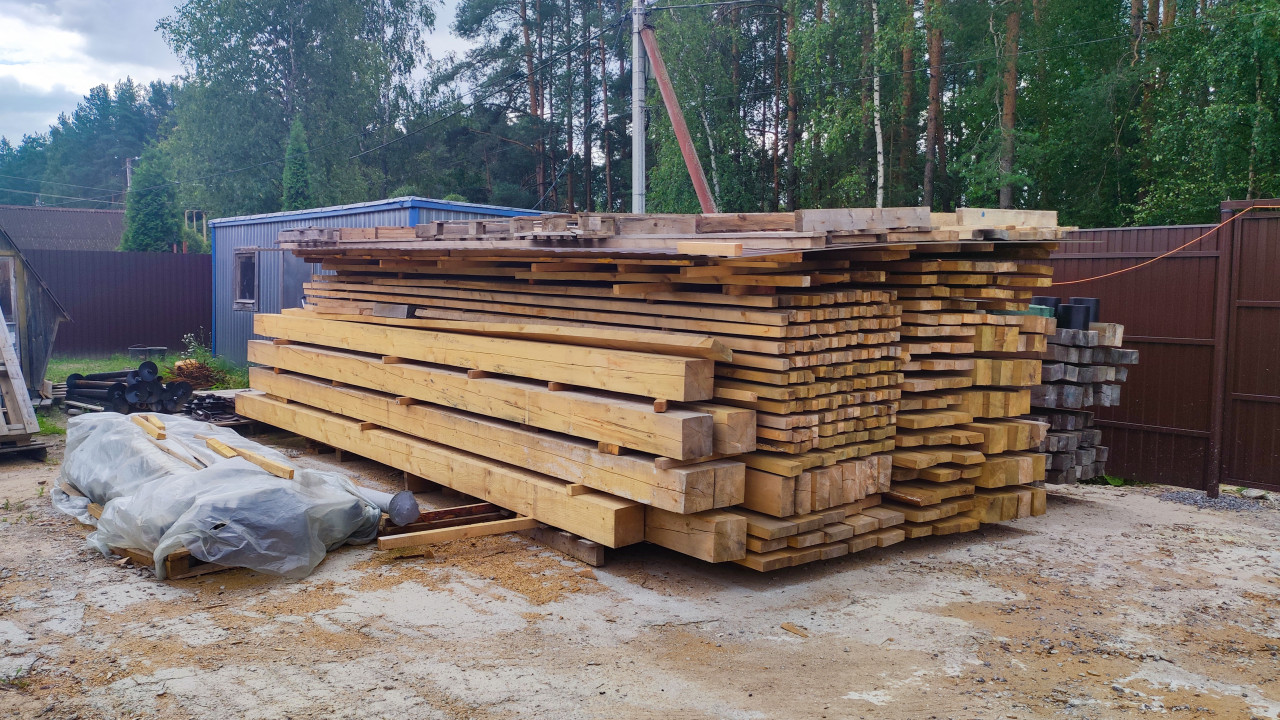 Каркас деревянного дома с перекрытиями и перегородками на этапе сборки