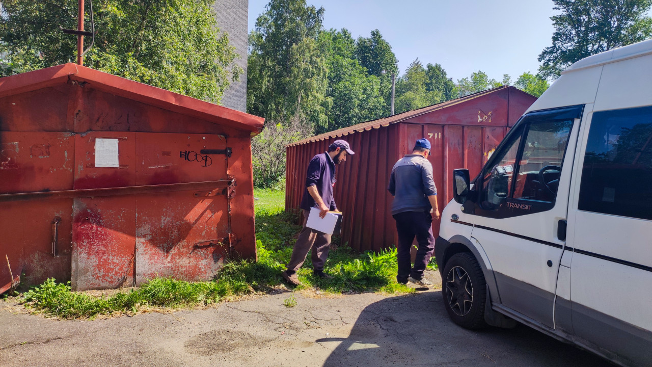 контроль качества проверка качества оценка качества экспертиза строительный контроль технический контроль технадзор строительный надзор технический надзор люди работа процесс контроль проверка осмотр мужчины рабочие документы папка инспекция инвентаризация коммунальное хозяйство ЖКХ двор жилой дом гаражи металлический гараж ржавчина хозяйственные постройки фургон коммерческий транспорт асфальт трава зелень деревья лето солнечная погода городская инфраструктура обслуживаниеПохожие фотографии
