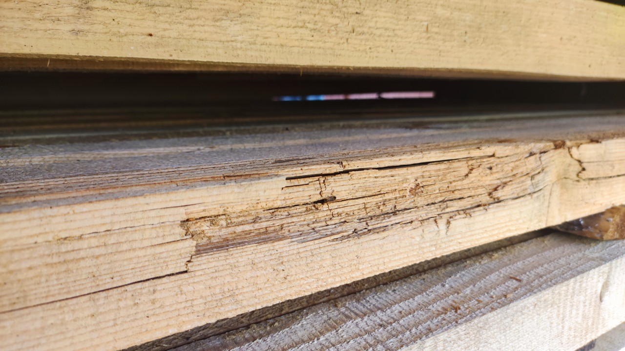 Следы механических повреждений на деревянной стойке игрового комплекса