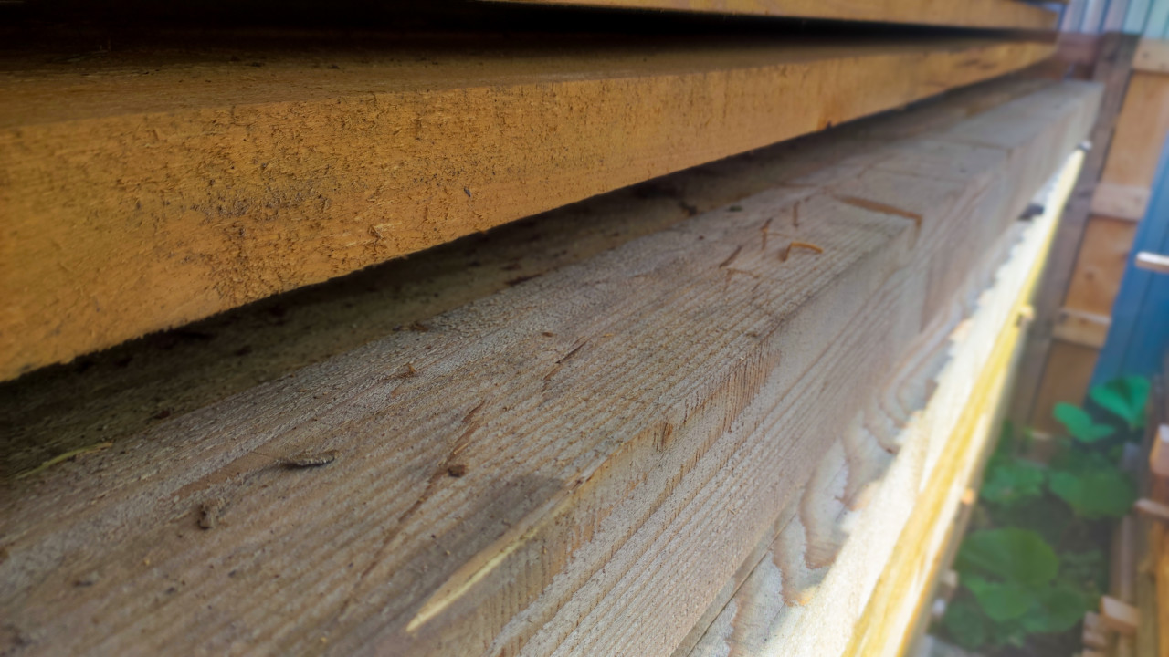 Измерение толщины деревянного бруска на крыше