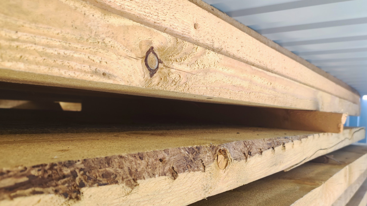Партия металлоконструкций каркаса котельной на складе перед сборкой