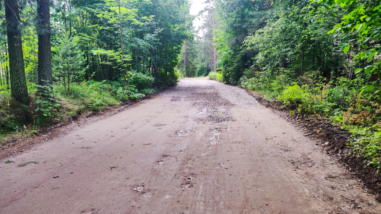 Жилая улица с частным домом под зелёной крышей и многоэтажкой на горизонте