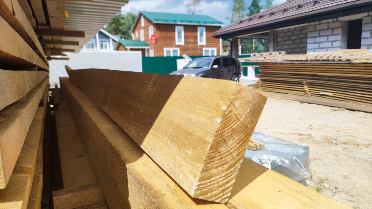 Строительство дома в загородной местности в ясный день