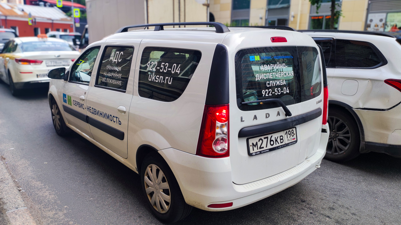 Парковка у офиса автоуслуг с витринным фасадом и рекламными вывесками