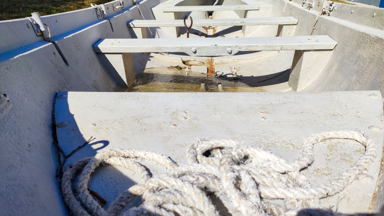 Внутренняя конструкция деревянной лодки с заклёпками