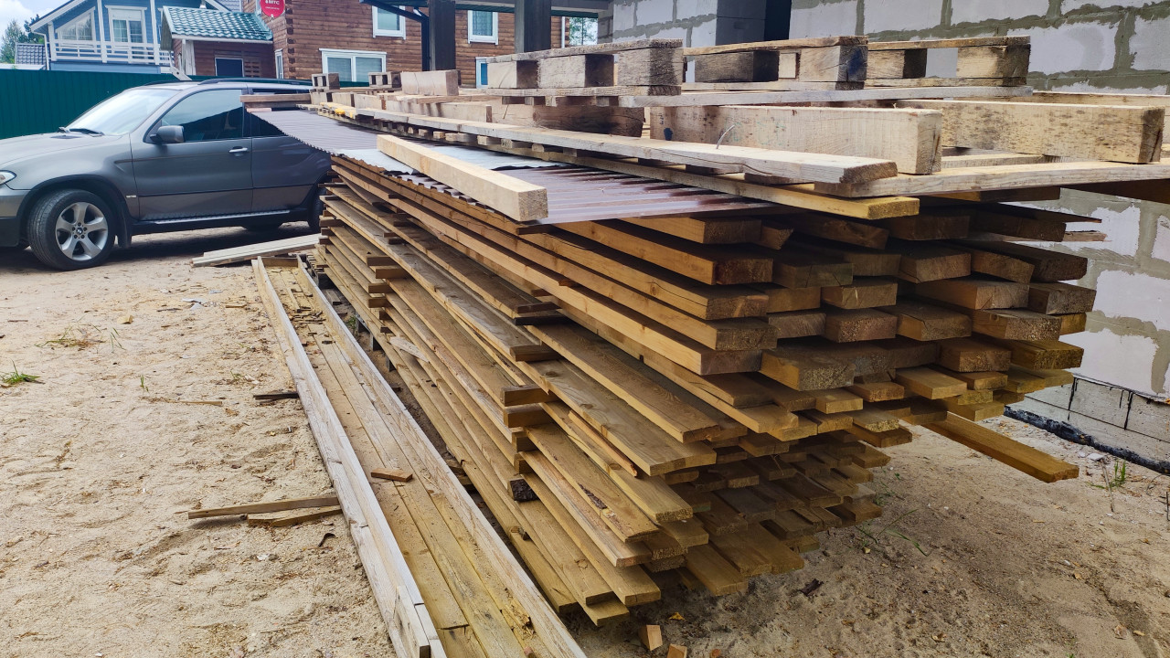 Строительные материалы и техника рядом с лесополосой