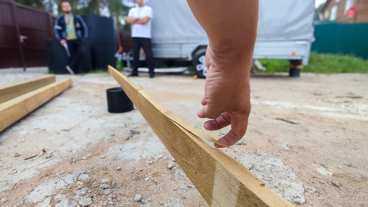 Выемка грунта для пешеходной дорожки во дворе жилого дома