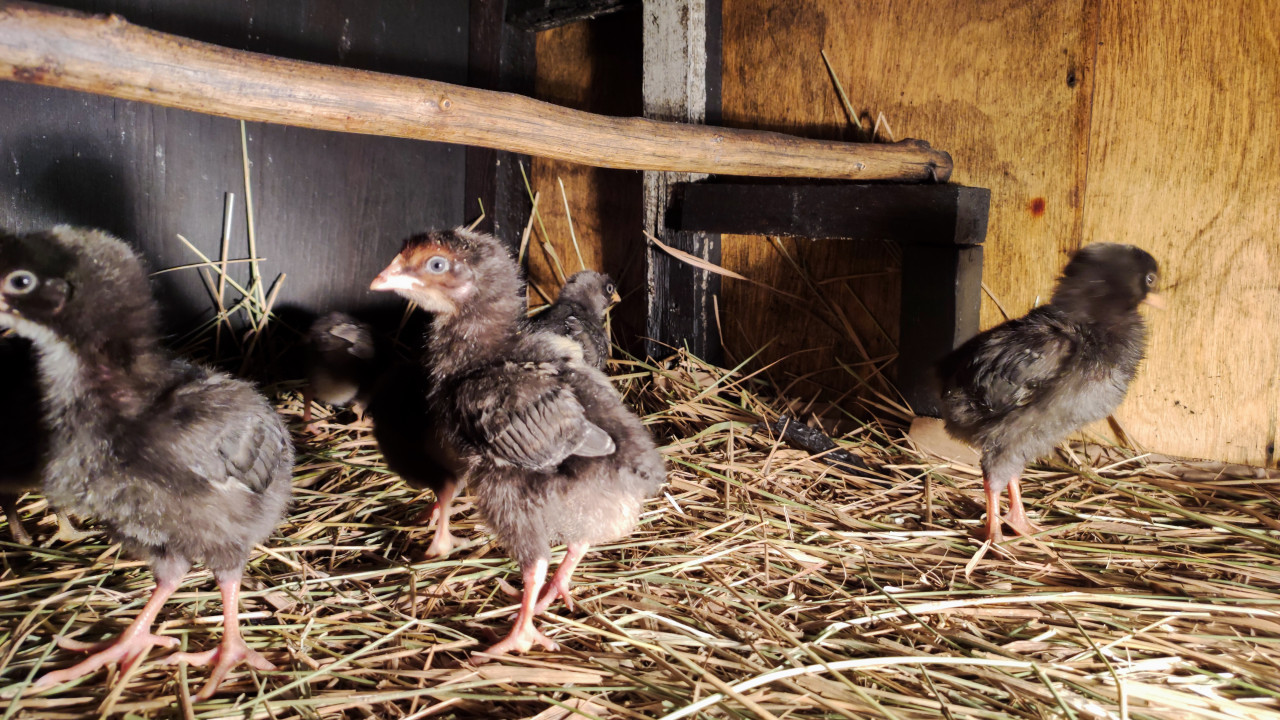 животные птицы домашняя птица цыплята молодняк птицеводство фермерство сельское хозяйство домашнее хозяйство курятник птичник брудер содержание птицы уход за птицей кормление птенцы подворье солома подстилка угол курятника тени освещение лампой деревянные доски насест выращивание выводок стая темные цыплята развивающиеся перья сельская жизнь животноводство деревенский быт частное хозяйствоПохожие фотографии