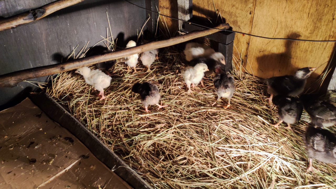 животные птицы домашняя птица цыплята молодняк птицеводство фермерство сельское хозяйство домашнее хозяйство курятник птичник брудер содержание птицы уход за птицей кормление птица курица птенцы ферма разведение кур содержание солома сено подстилка жердочка деревянные стенки стадо белые цыплята темные цыплята помещение хозяйство сельский быт натуральное хозяйство выращивание молоднякаПохожие фотографии