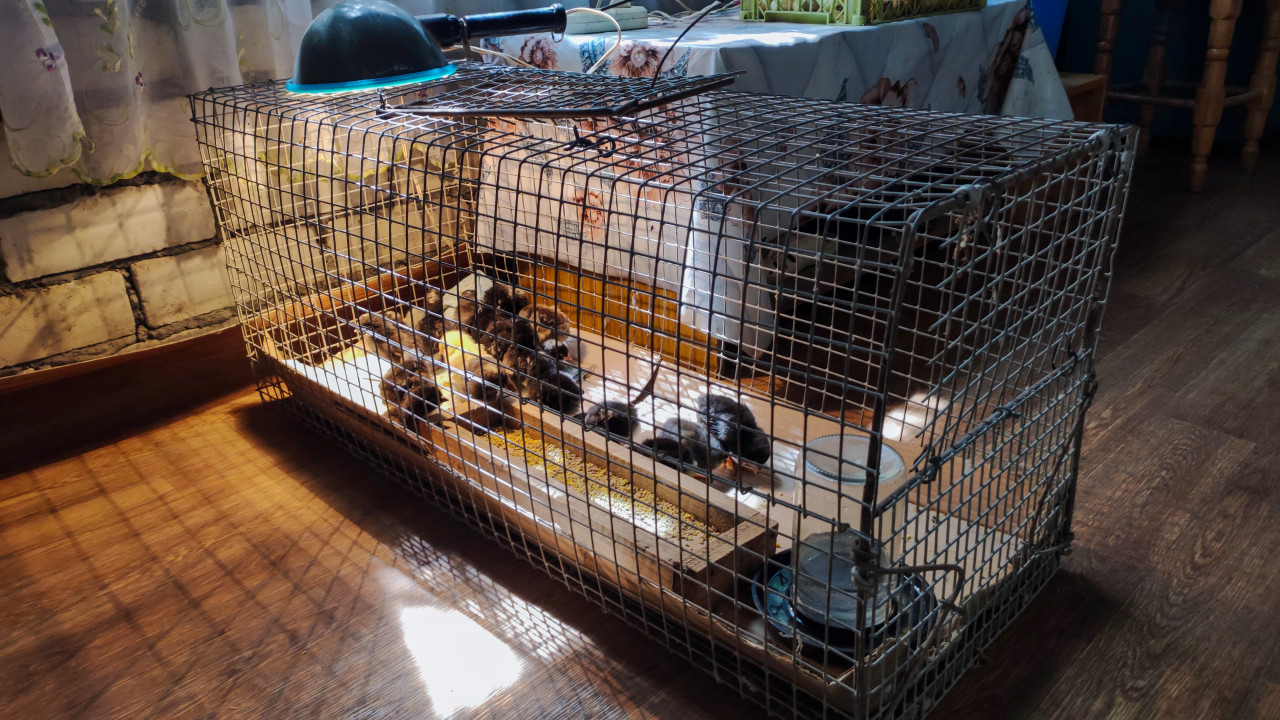 животные птицы домашняя птица цыплята молодняк птицеводство фермерство сельское хозяйство домашнее хозяйство курятник птичник брудер содержание птицы уход за птицей кормление клетка сетка проволочная клетка тепловая лампа обогрев освещение кормушка корм для цыплят поилка вода оборудование самодельная конструкция уход за животными интерьер пол занавески бытовые условия разведение кур фермерский бытПохожие фотографии