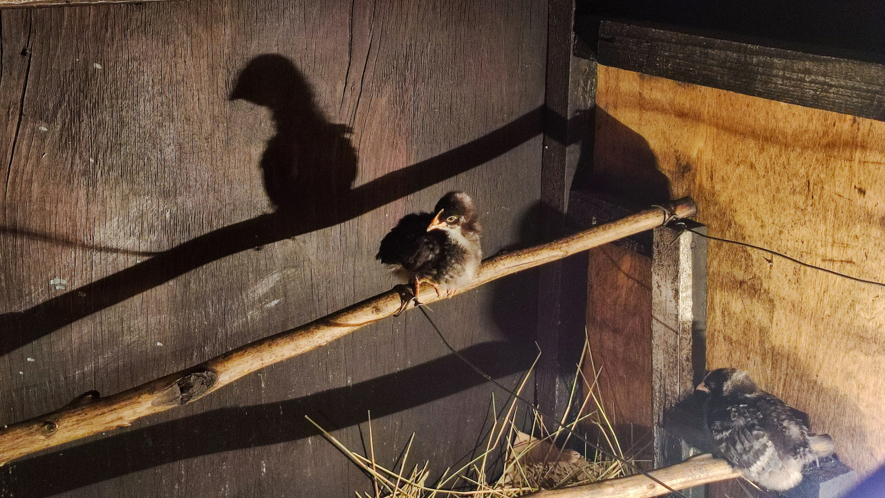 животные птицы домашняя птица цыплята молодняк птицеводство фермерство сельское хозяйство домашнее хозяйство курятник птичник брудер содержание птицы уход за птицей кормление насест жердочка тень силуэт искусственный свет освещение деревянные стены доски интерьер уход спокойствие ночное освещение провод крепление подстилкаПохожие фотографии